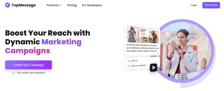 L’innovation au cœur de chaque message. Avec TopMessage, chaque message devient un levier de croissance. Notre api de messagerie, notre whatsapp api et notre API SMS offrent aux entreprises une co